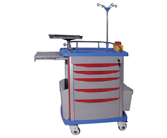 2.5 頂部配置有除顫儀平臺、不銹鋼伸縮緩沖輸液架、銳器盒