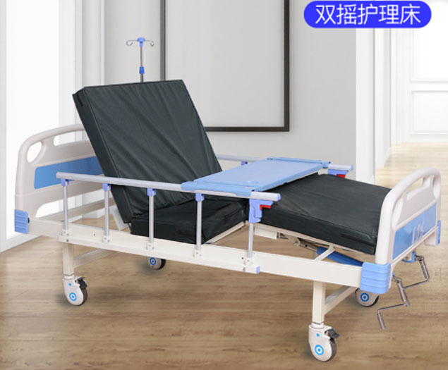 雙搖病床:二組搖桿,可升降。具有可幫助靈活調節病人患者背部、腿部角度高低2種功能。便于病人患者起背就餐、與人體交流、看書(shū)娛樂(lè )、也方便醫護人員診察、護理和治療。適用于各大醫院、鄉鎮衛生院、社區衛生服務(wù)中心、康覆機構、養老中心、家庭養老病房等需要護理病人的場(chǎng)所。
